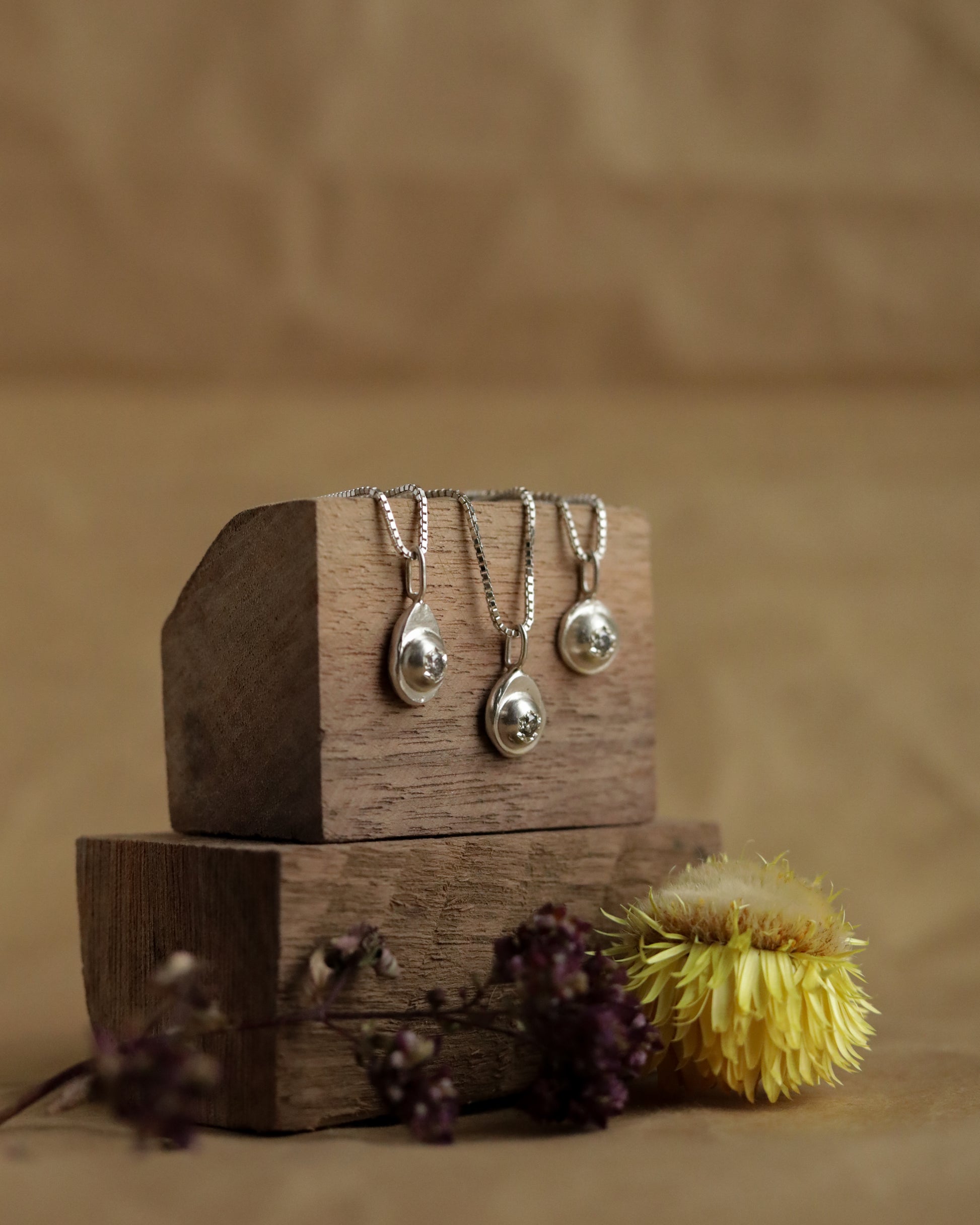 Crafted from sterling silver and adorned with a 2.8mm salt-and-pepper natural diamond, every Galaxy Pendant is unique and organic—no two are the same.
